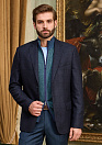 Пиджак темно-синий в мелкую клетку из шерсти с добавлением кашемира. Шерсть обладает высокой воздухопроницаемостью и хорошо отводит влагу от тела, кашемир придает пиджаку легкость и мягкость. Производитель ткани итальянский бренд DRAGO. Технология изготовления пиджака «полуканвас» – обеспечивает естественность силуэта, делая его визуально стройнее. Полуприталенный силуэт Milano. Пуговицы пришиты невидимым с изнаночной стороны швом – 2 по борту, по 4 на рукавах. Лацкан классический. Карманы: 1 нагрудный прорезной с листочкой, 2 боковых прорезных с клапанами, 4 внутренних кармана. 2 шлицы по спинке. Подкладка на пиджаке из однотонной вискозы, не электризуется, не вызывает раздражения.