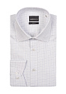 Белая рубашка в клетку светло-синего цвета. Приталенный силуэт подчеркивает фигуру, добавляя утонченности. Ткань рубашки из высококачественного египетского хлопка, мягкая, приятная тактильно, износостойкая и обеспечивает отличную воздухопроницаемость.