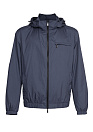 Легкая ветровка с капюшоном синего цвета. Длина по спинке в 50 размере: 73 см. Застежка на молнию с 2-мя бегунками. Воротник-стойка. Капюшон съемный на молнии и кнопках, кулиска регулирует объем по краю. 3 внешних кармана на молниях. 3 внутренних кармана: 2 из них на молнии, 1 на кнопке. Однотонная подкладка.